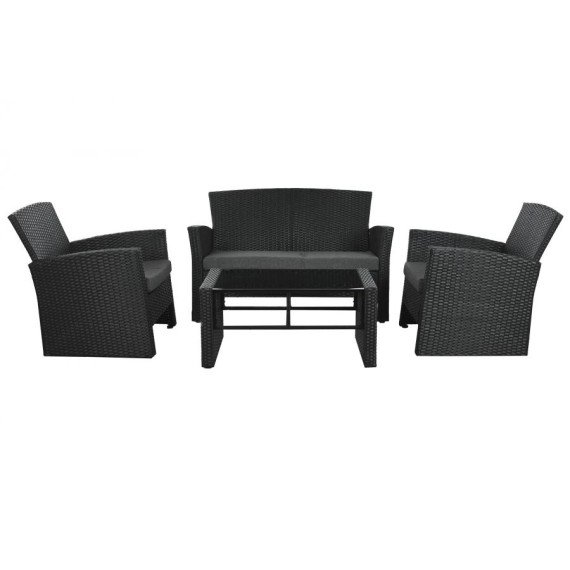Set sofá ratán compuesto por 3 sillones y una mesa. sintético / poliéster de 121X63X73 cm